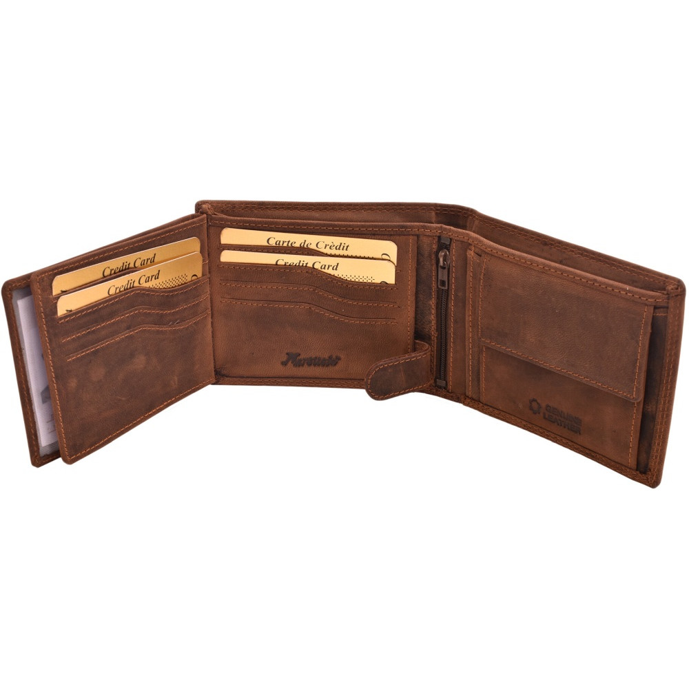 ×Pánská kožení peněženka Mercucio v kvalitní lícové kůži s rybářským motivem. Oblíbený model pro každého, bez rozdílu věku. Hodně místa pro všechno potřebné. Laserový motiv oživuje celou peněženku a mění ji na skvělý tematický dárek.