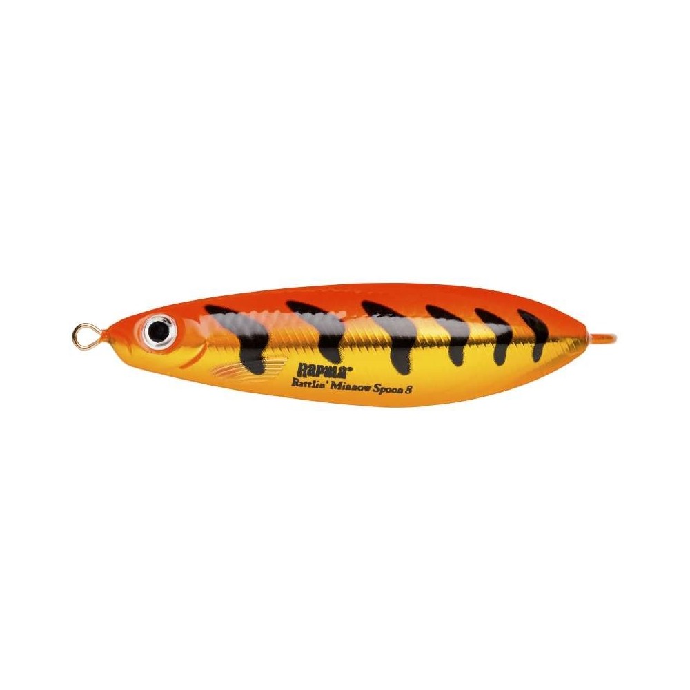 ×Rapala Rattlin' Minnow Spoon. Plandavka nabízí unikátní konstrukci, která v sobě spojuje siluetu střevle s pohybem plandavky. Rattlin' má široký záběr a nepravidelný chod, který tvoří atraktivní odrazy světla. Chrastítko ve vnitřní komoře vydává dráždivý hluk a vibrace. Rattlin' je osazen jednoháčkem ve velikosti 7/0 se speciálním krycím drátkem proti zachycení návnady v rákosí či plevelu. Rattlin' je určen zejména k lovu štik, které provokuje svými záškuby, velkým bočním náklonem a vyváženými vibracemi.