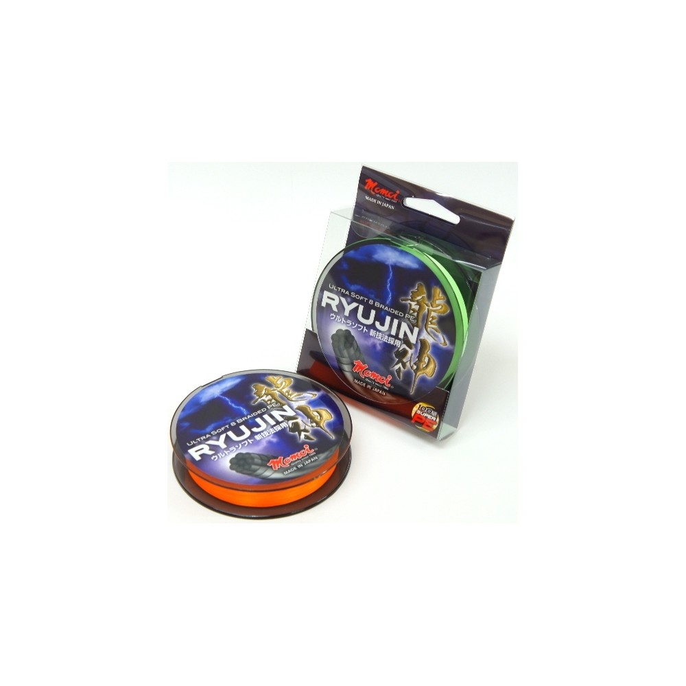 Šňůra Momoi RYUJIN, výjimečná splétaná šňůra vyrobená japonskou společností Momoi, která vznikla v roce 1905! Tato jedinečná osmi vláknová šňůra představuje v současné době absolutní technologický vrchol. Extra pevné HPPE vlákno je zároveň i velice jemné a ohebné v porovnání s ostatními, výsledkem je pravděpodobně nejměkčí splétaná šňůra na trhu! Byla oceněna hlavní cenou na světové výstavě EFTTEX 2013! Při výrobě byla použita technologie "MJS processing" od společnosti Momoi - Momoi Flex Coating, tato speciální úprava šňůry snižuje hluk v očkách a zároveň umožňuje i lepší klouzání s menším odporem, jejichž výsledkem jsou delší hody. Minimální průtažnost zajišťuje vynikající kontakt s nástrahou a ucítíte každý záběr. Vhodná pro všechny rybolovné techniky - přívlač, trolling, feeder, položenou a lehký jigging. Made in Japan! Vlákno vyrobené ,natočené a zabalené v Japonsku!