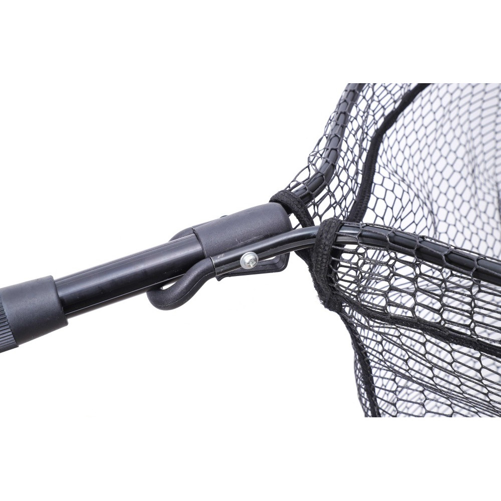 Podběrák s potápivou silikonovou síťkou s hrubými oky, která je šetrná k rybám a téměř znemožňuje zachycení háčků.