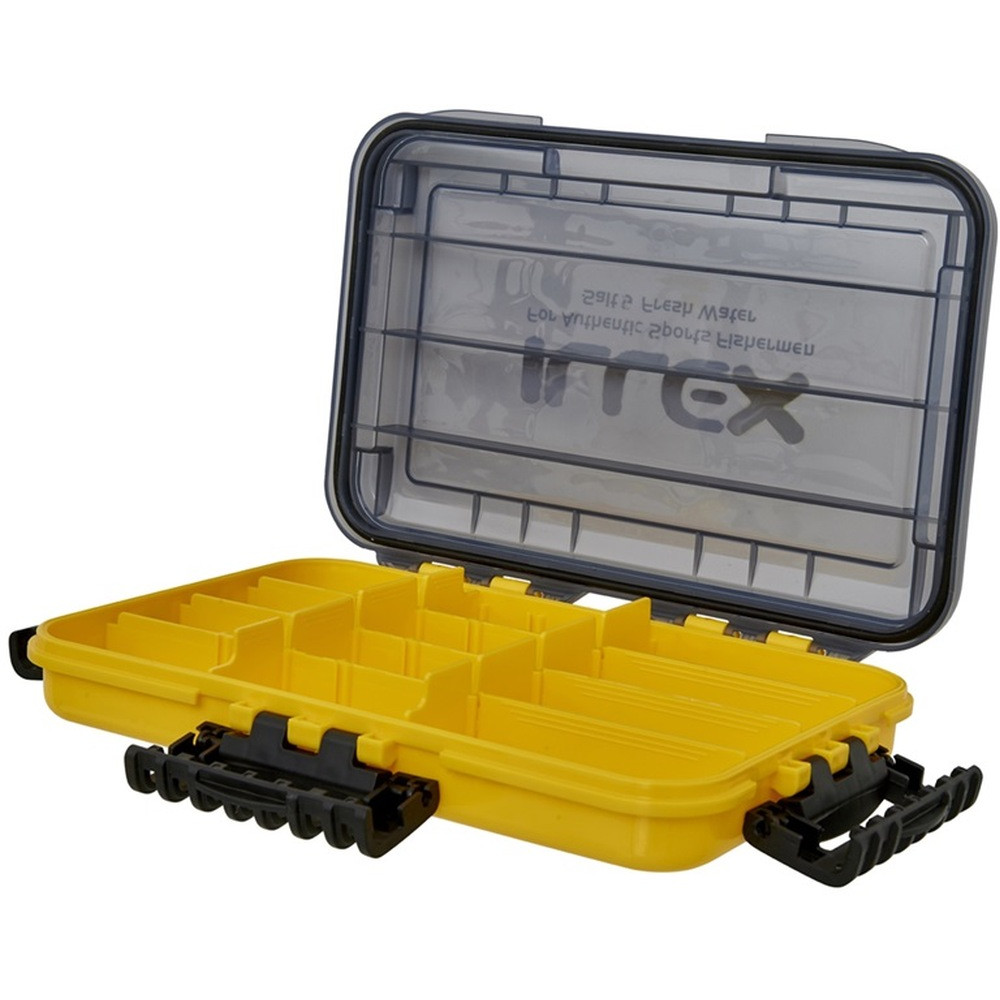 ×Illex Tackle Box 270 Waterproof 5 C je vodotěsná krabička na nástrahy a drobnosti. Celkem obsahuje 12 nastavitelných přihrádek. Čtyři uzávěry s vodotěsnou úpravou víka zabraňují vniknutí vody do krabičky. Pokud není krabička naplněna těžkými věcmi, bude plavat na hladině při nečekaném pádu do vody.