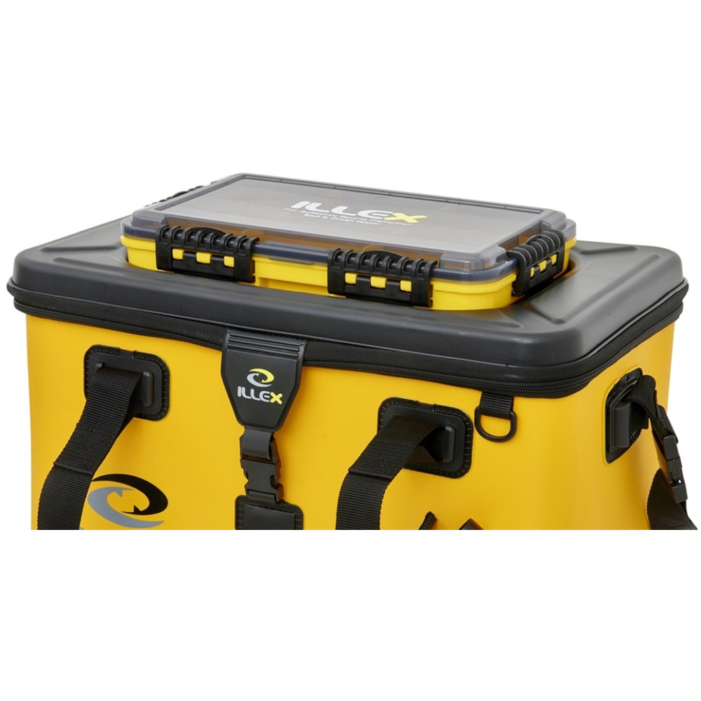 ×Illex Tackle Box 355 Waterproof 3 HC je vodotěsná krabička na nástrahy a drobnosti. Celkem obsahuje 9 nastavitelných přihrádek. Čtyři uzávěry s vodotěsnou úpravou víka zabraňují vniknutí vody do krabičky. Pokud není krabička naplněna těžkými věcmi, bude plavat na hladině při nečekaném pádu do vody Pasuje na tašku Bakkan Boat 50.
