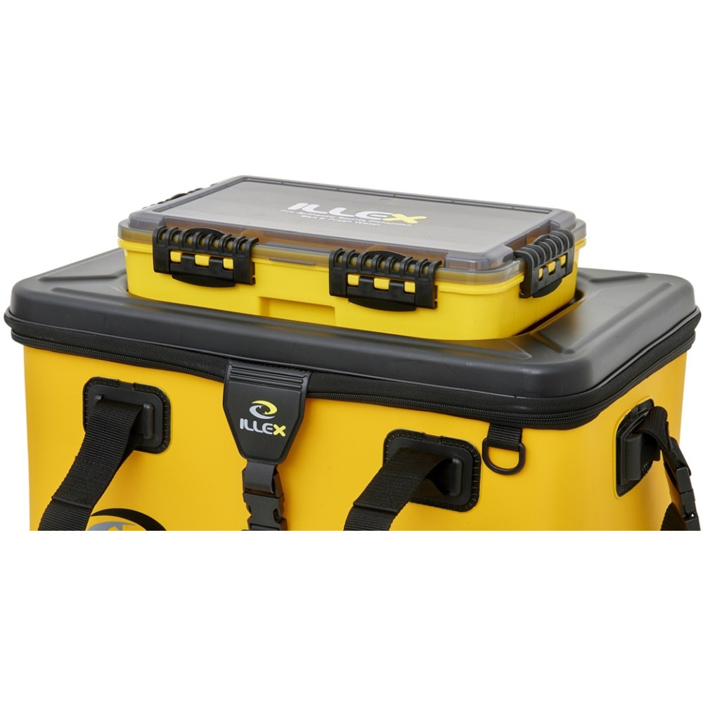 ×Illex Tackle Box 355 Waterproof 3 TC je vodotěsná krabička na nástrahy a drobnosti. Celkem obsahuje 9 nastavitelných přihrádek. Čtyři uzávěry s vodotěsnou úpravou víka zabraňují vniknutí vody do krabičky. Pokud není krabička naplněna těžkými věcmi, bude plavat na hladině při nečekaném pádu do vody Pasuje na tašku Bakkan Boat 50.