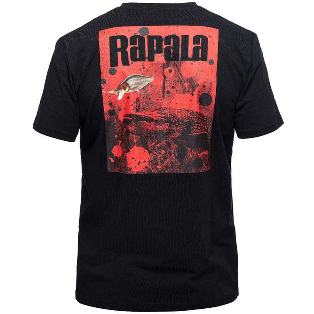 Bavlněné rybářské tričko Rapala Splash T-Shirt Black v černé barvě s potiskem.
