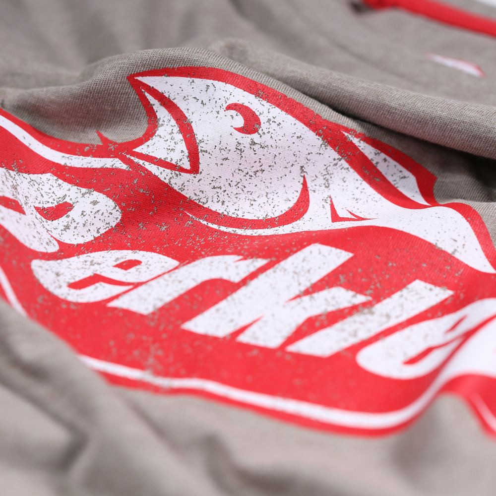 Bavlněné rybářské tričko v šedé barvě s potiskem.