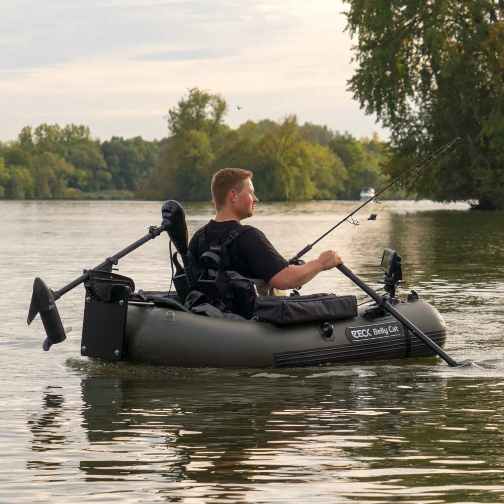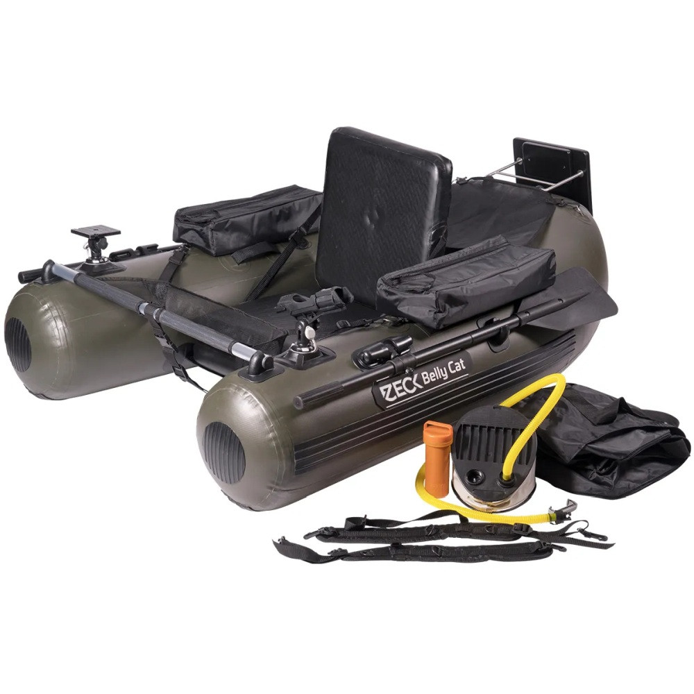 ×Belly Boat Zeck Belly Cat. Výbava robí tento belly boat výrazne flexibilnejším a bezpečnejším ako bežné belly boaty. Nielen veľkosť 170 cm zaisťuje enormnú stabilitu pri náročnom zdolávaní rýb, ale aj pozícia sedenia. Tri komory v plaváku, vysokotlaková vzduchová podlaha a taktiež vysokotlakové sedadlo zaisťujú potrebnú bezpečnosť. Nosnosť činí 160 kg a zahŕňa ešte dostatočnú rezervu.