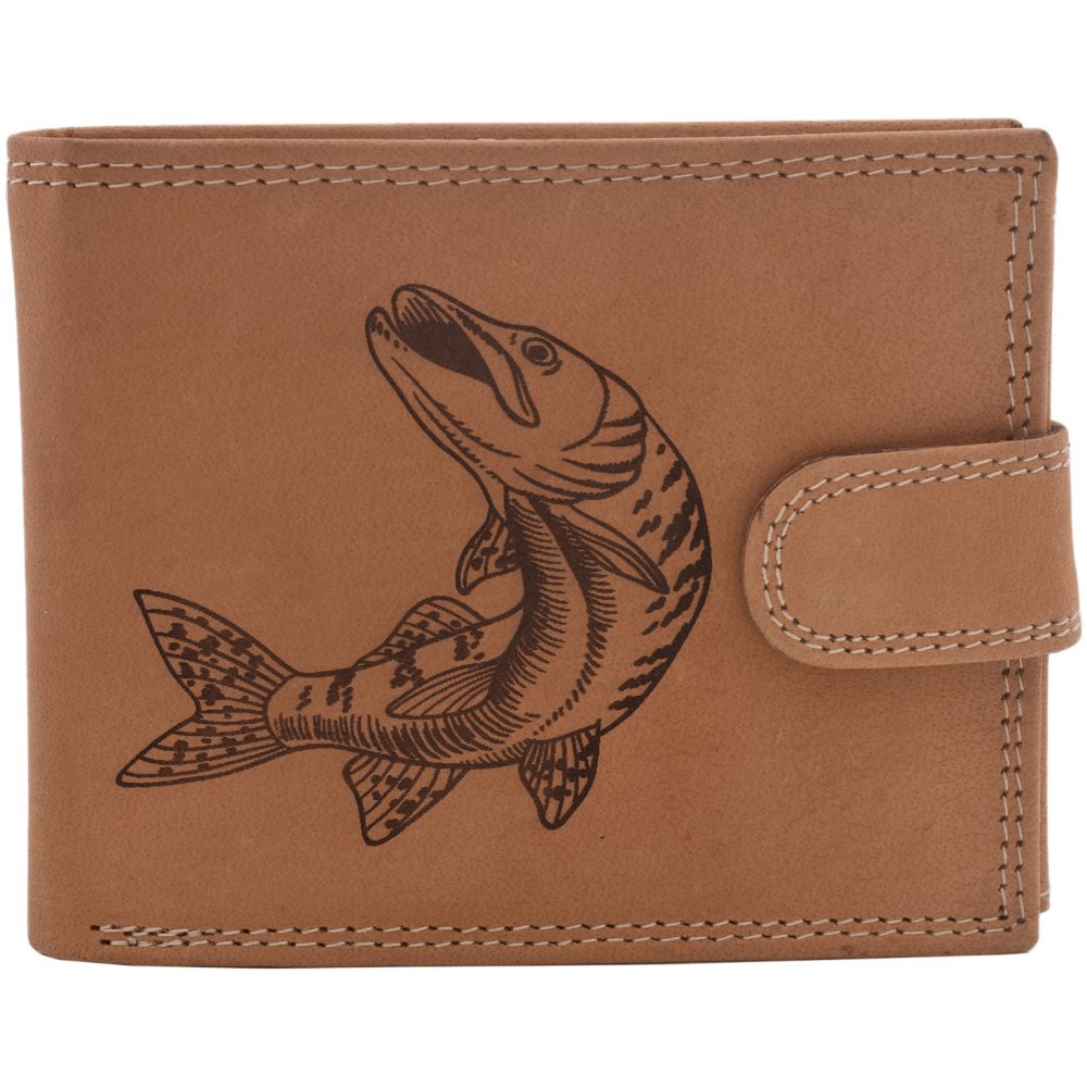Pánska kožená peňaženka v kvalitnej lícovej koži s rybárskym motívom.